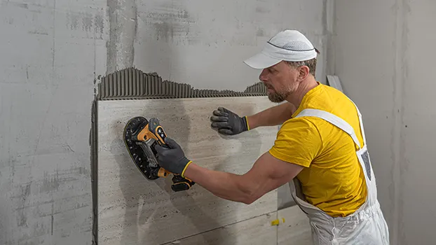 - 落下防止対策:落下防止対策としては、アンカーや留め金具を併用することが重要です。特に高所の壁面に大判タイルを施工する際は、接着剤だけに頼らず、専用の金具や機械的固定を組み合わせることで、安全性を確保し、タイルの自重や振動による落下リスクを低減できます。